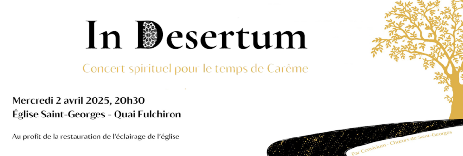 Mercredi 2 avril à 20h30 à l’église Saint-Georges Concert spirituel pour le temps de Carême au profit de la restauration de l’éclairage de Saint-Georges. Au programme des pièces choisies pour le temps du Carême. Rendez-vous le 2 avril prochain à 20h30, église Saint-Georges ! Participation libre, au profit de la rénovation de l’éclairage de l’église …